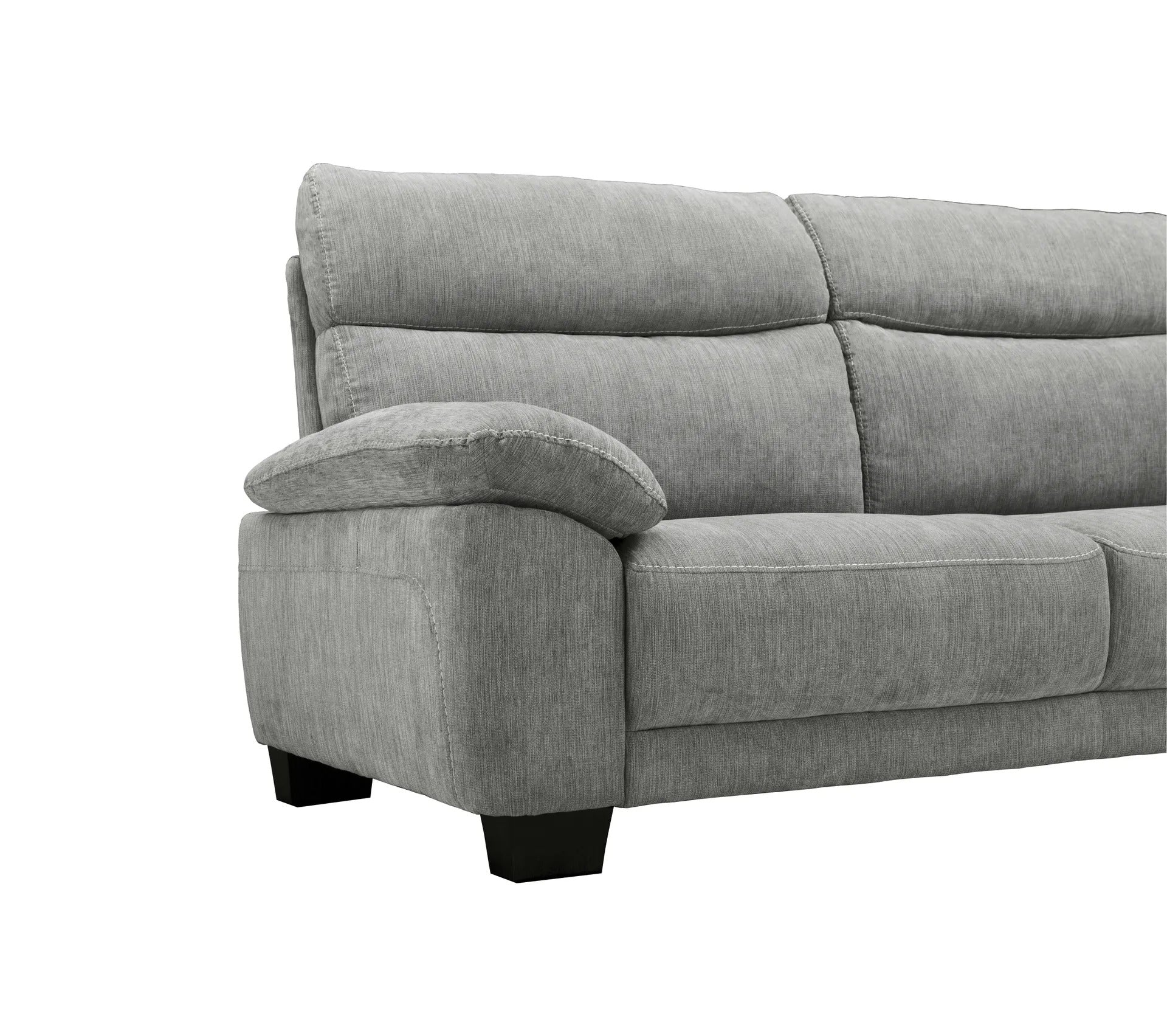 Ce canapé droit est revêtu de tissu 100 % polyester. À la fois doux et résistant, il se marie avec tous les styles de décoration. En effet, la teinte moderne de ce canapé gris clair complète volontiers un mobilier en bois ou en métal. À agrémenter avec des coussins imprimés.