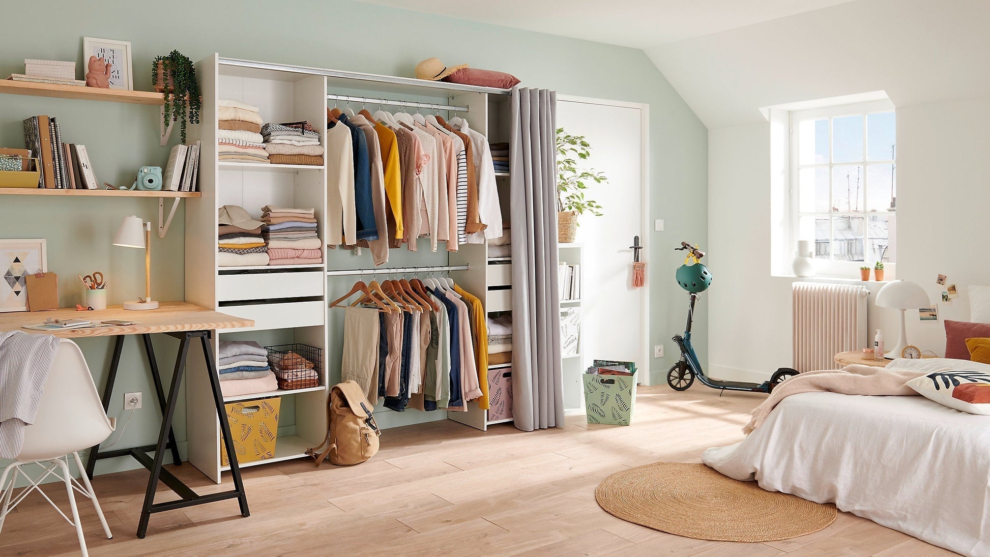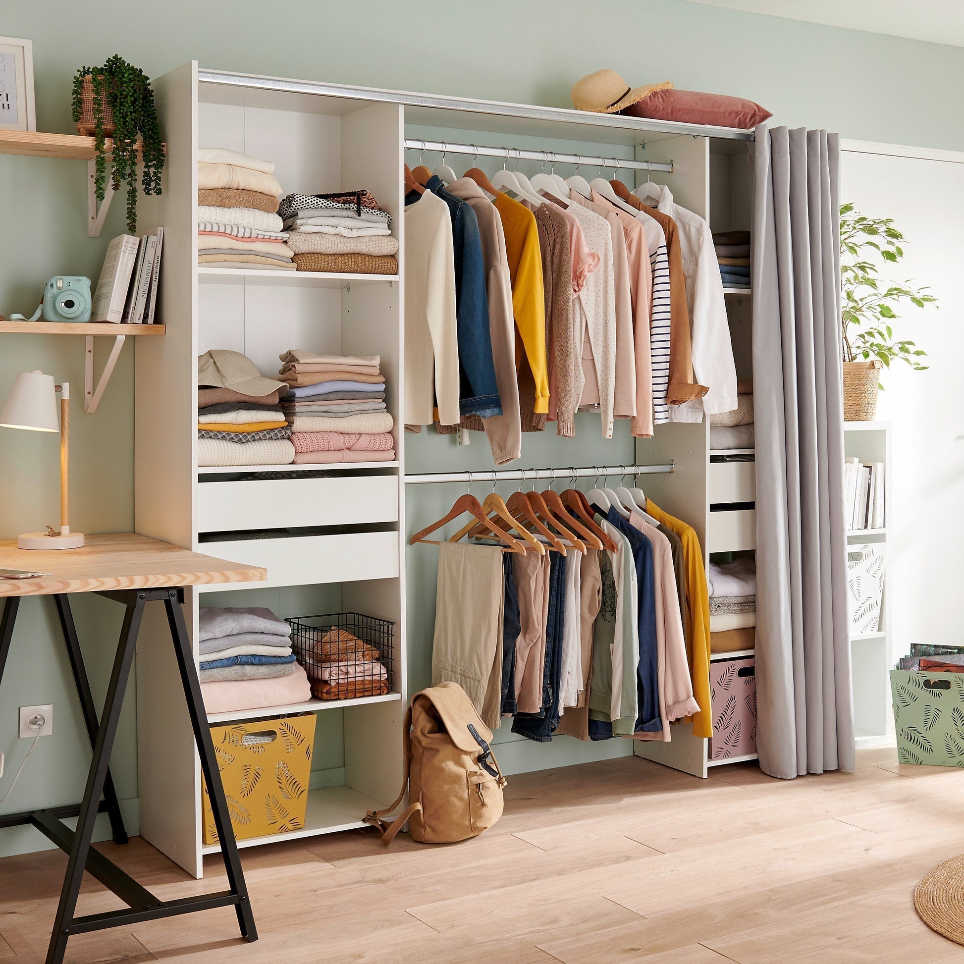 Kit dressing décor blanc avec rideau l. 200 x H. 200,4 x P. 48,25 cm